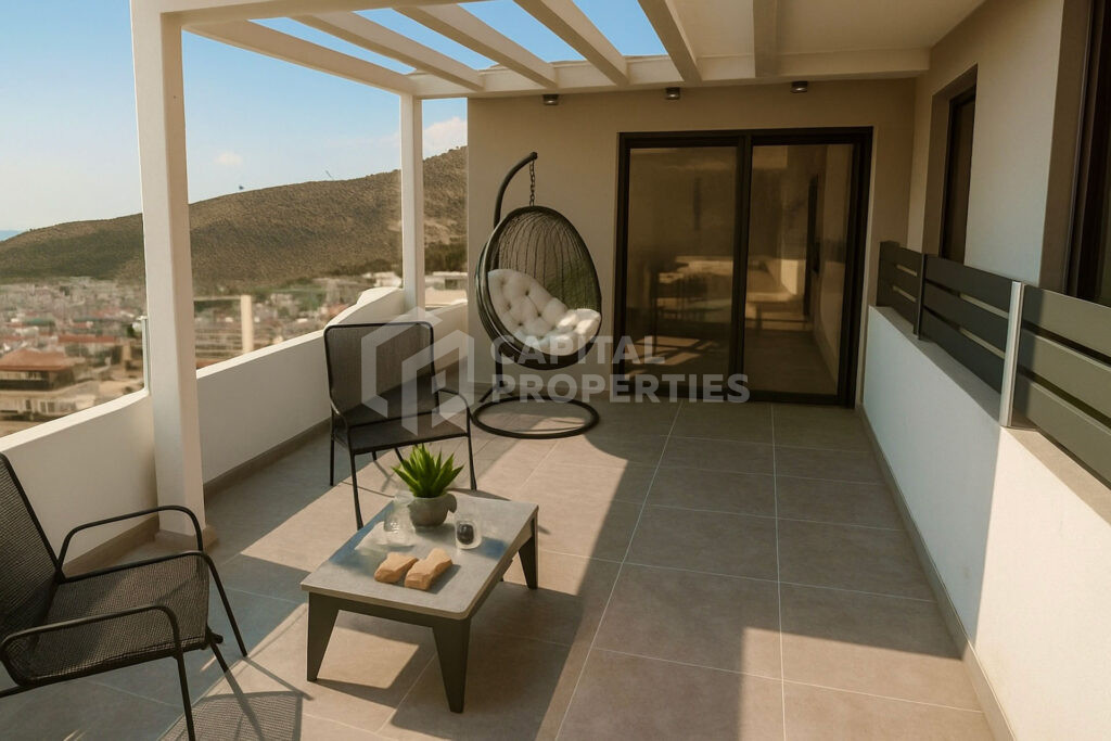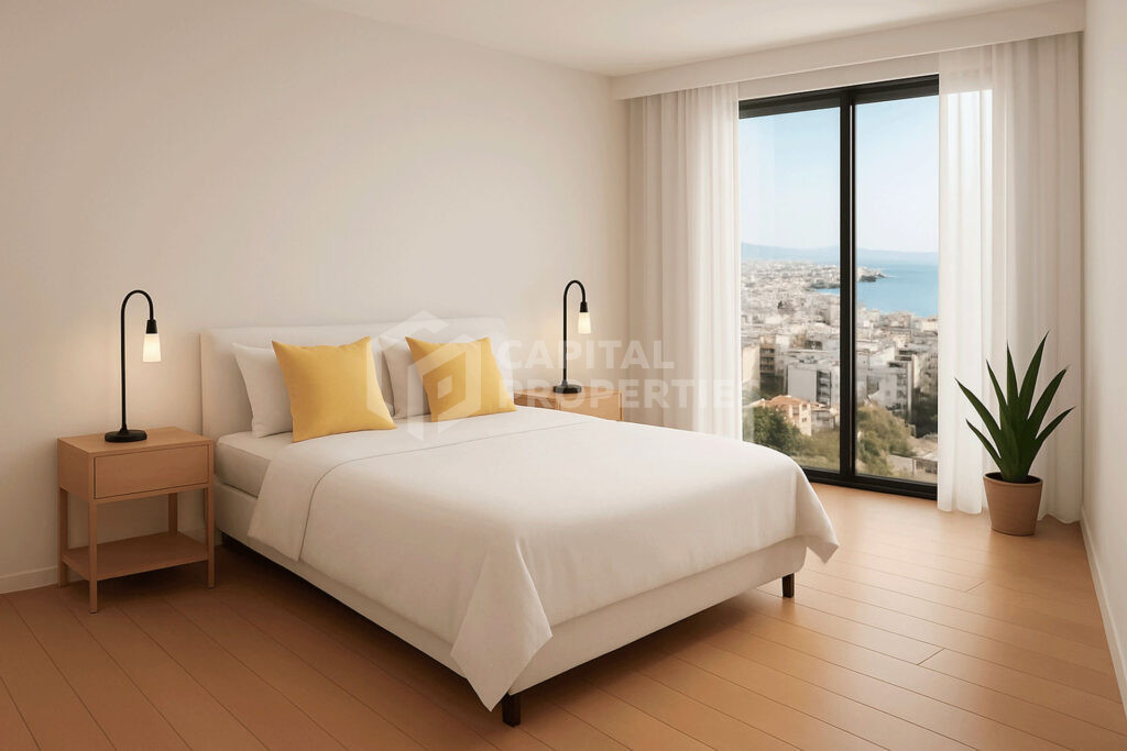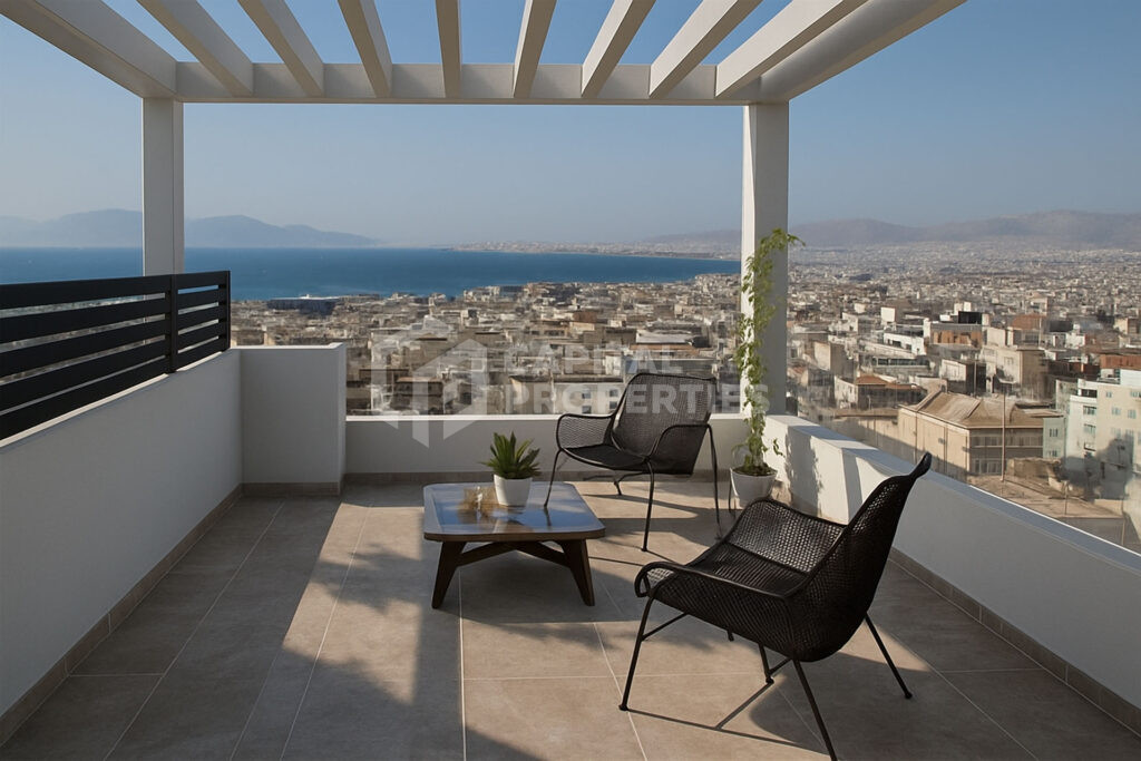 Designed for those who value space, light, and architectural clarity, this 5th–6th floor maisonette in Ano Glyfada delivers 145 sq.m of thoughtfully arranged living across two levels. The main living level features an open-plan living and dining area, a contemporary fitted kitchen, and a guest WC, creating a fluid and functional space suited to both everyday living and relaxed entertaining. Clean architectural lines and a calm, neutral palette define the interior atmosphere. The upper level is dedicated to privacy and comfort, accommodating three bedrooms, including a master suite with a private bathroom, along with an additional shared bathroom. The layout ensures a clear separation between living and sleeping areas, enhancing both practicality and discretion. Private outdoor areas extend the interior spaces, offering an inviting setting for Mediterranean living in one of the Athenian Riviera’s most established residential neighborhoods.