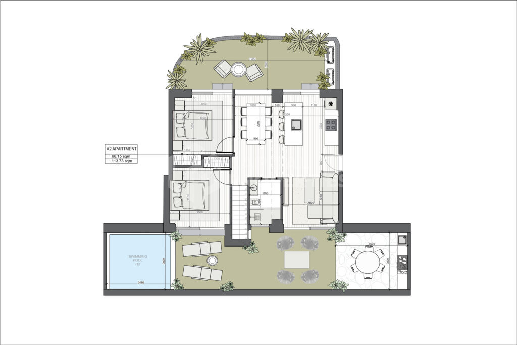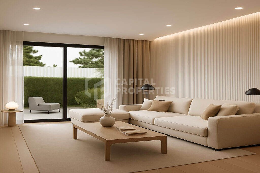 Этот изысканный двухуровневый мезонет предлагает редкое сочетание приватности, открытого пространства и современного комфорта, создавая ощущение независимой резиденции, а не обычной квартиры. Особняк общей площадью 114 кв.м. расположен на первом и цокольном этажах и имеет отдельный вход, частный бассейн и обширный частный сад площадью 63 кв.м. Выделенное парковочное место на собственной территории еще больше повышает повседневное удобство. Верхний уровень спроектирован как основная жилая зона, включающая просторную гостиную с обеденной зоной и кухню открытой планировки, наполненную естественным светом и плавно соединенную с открытым пространством. На этом уровне также расположены две спальни с общей ванной комнатой и прямым выходом в сад и к бассейну – идеальное место для расслабленной жизни в помещении и на свежем воздухе. Нижний уровень предназначен для уединения и гибкости. Здесь расположена удобная главная спальня с собственной ванной комнатой, а также дополнительная многофункциональная зона, которая может легко выполнять функции домашнего офиса или частной гостиной, дополненная дополнительным туалетом. Чистые архитектурные линии, сбалансированные пропорции и продуманная планировка определяют этот мезонет, делая его подходящим как для постоянного проживания, так и в качестве высококачественной инвестиции. Щедрый сад и частный бассейн повышают уровень жизни, предлагая ощущение спокойствия и эксклюзивности, которое редко встречается в недвижимости такого масштаба.